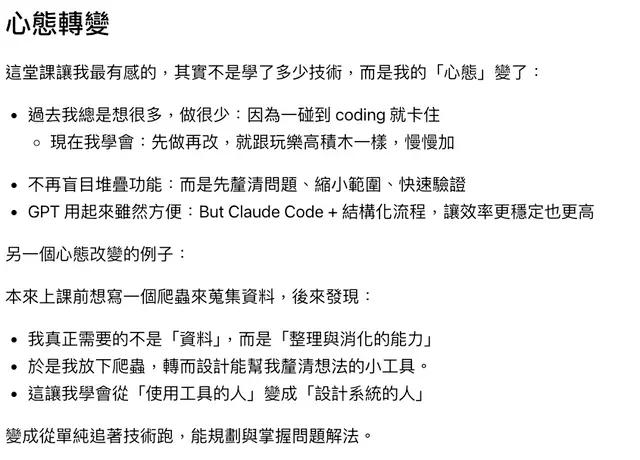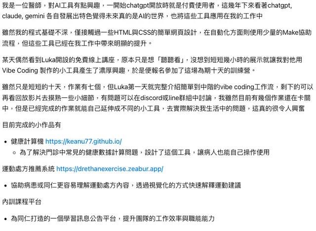讓許多完全無程式開發經驗的同學,能夠在 10 天的時間掌握 Vibe Coding 工作流。
