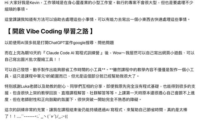 敢這樣做的原因,對「Vibe Coding 實戰營」的效果有信心